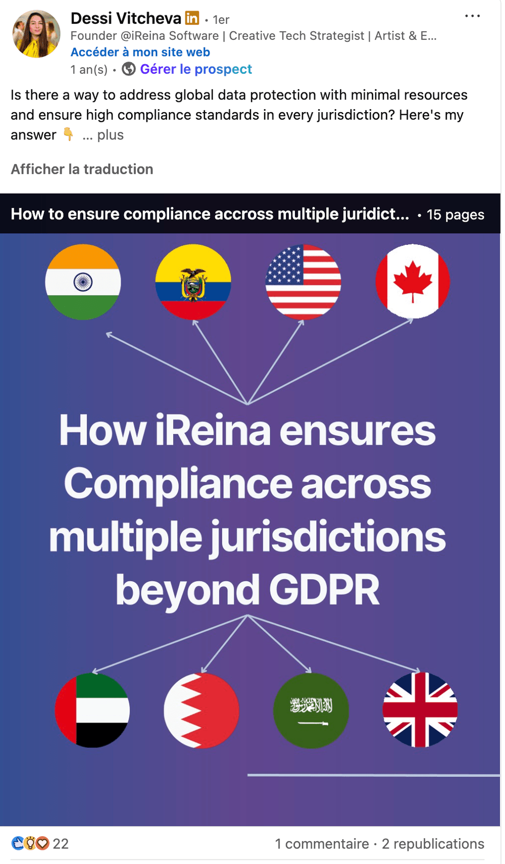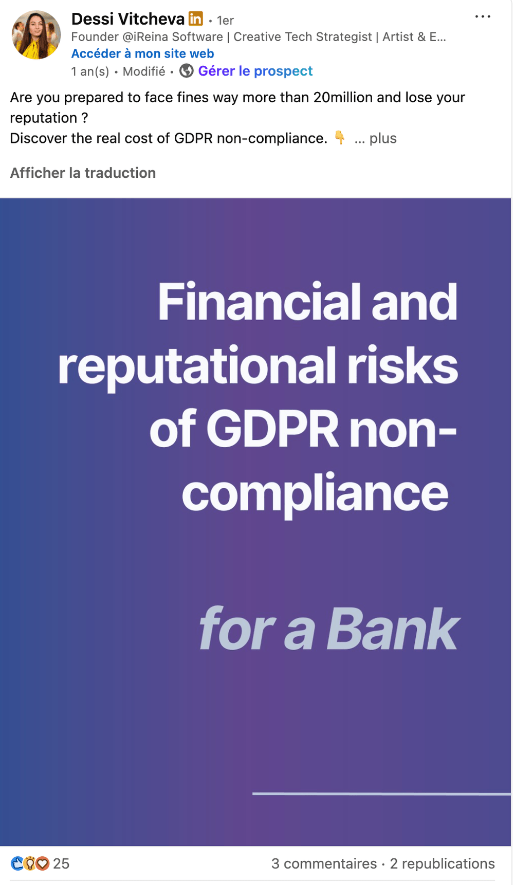 Spécialiste en privacy et conformité RGPD, Dessi voulait positionner son expertise sur LinkedIn et rendre son entreprise plus visible auprès des décideurs.